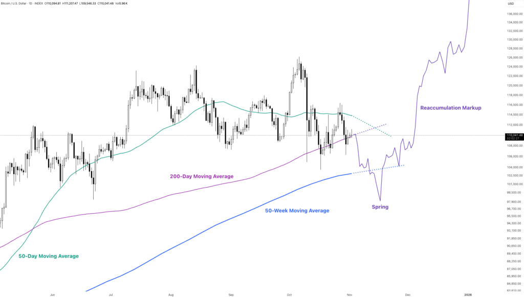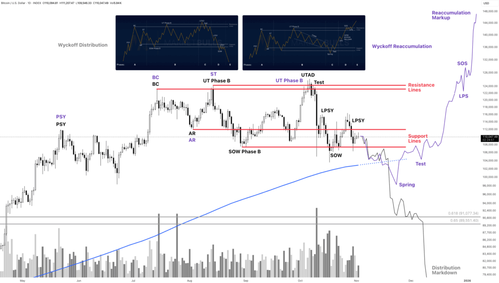 If Bitcoin breaks below the 50-week moving average, it could still technically remain in reaccumulation. However, if it stays below that level for two consecutive weeks, it would confirm a transition into Wyckoff distribution, signaling a more prolonged correction.
