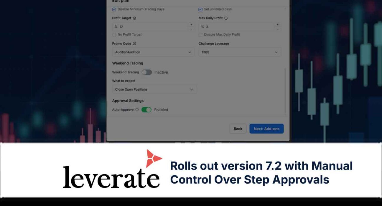 Leverate v7.2 adds manual step approvals, giving prop firms greater control over risk before funding traders.