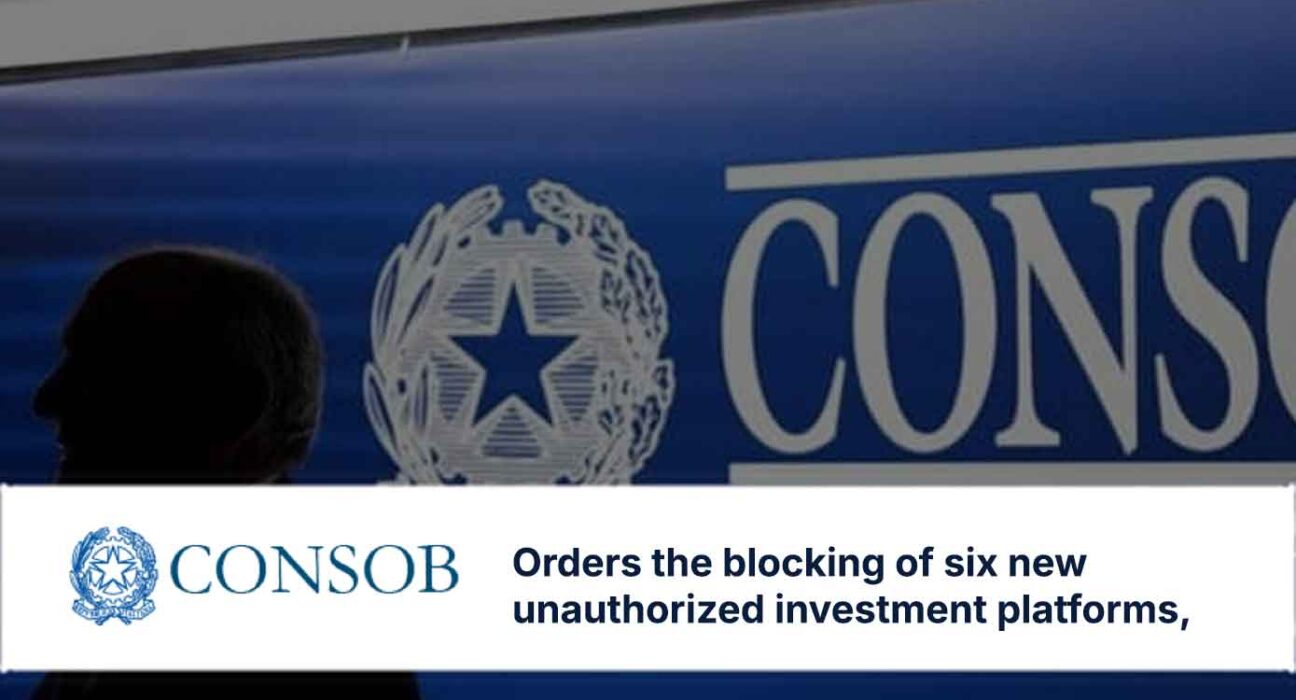 CONSOB has blacklisted six more unauthorized trading sites, bringing total blocks to 1,366 since 2019.