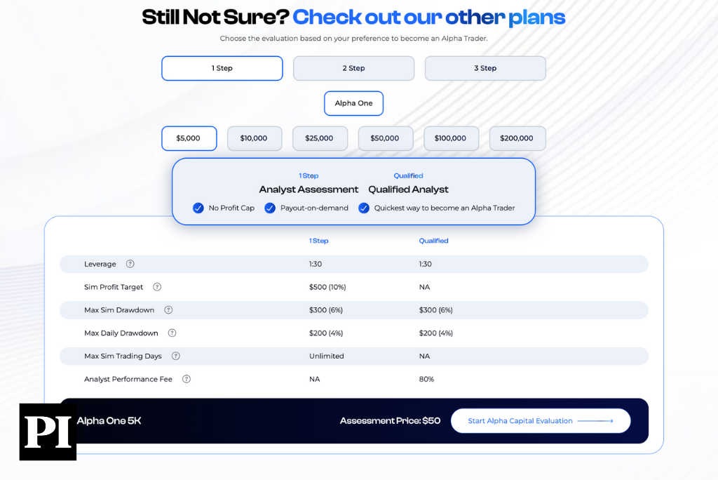 Alpha Capital Group は2ステップ制の評価方式を採用しており、次のような条件が設定されています。