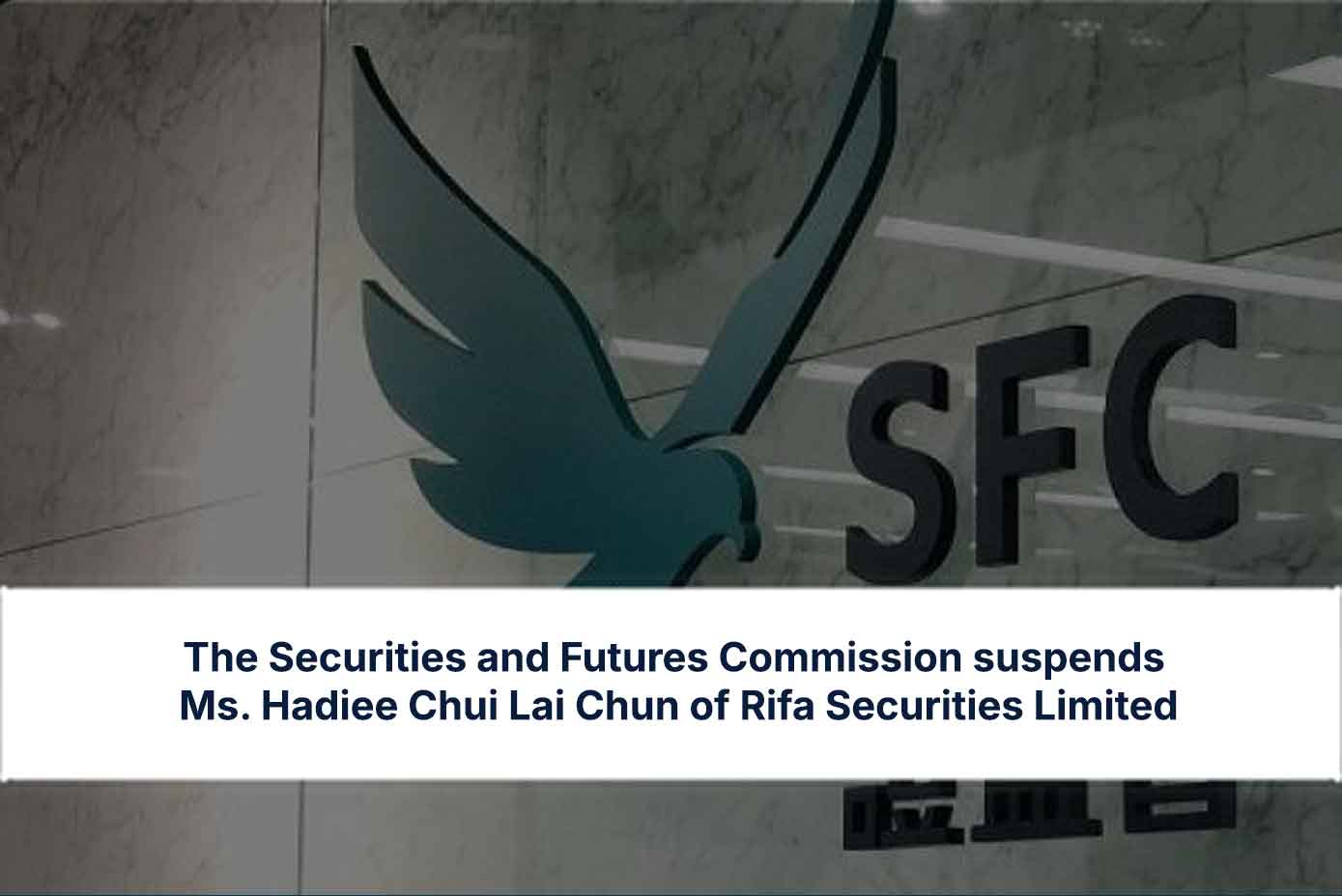 The Securities and Futures Commission (SFC) of Hong Kong has suspended Ms. Hadiee Chui Lai Chun, a licensed representative of Rifa Securities Limited, for a period of seven months-effective June 13, 2025, to January 12, 2026-following serious compliance breaches.