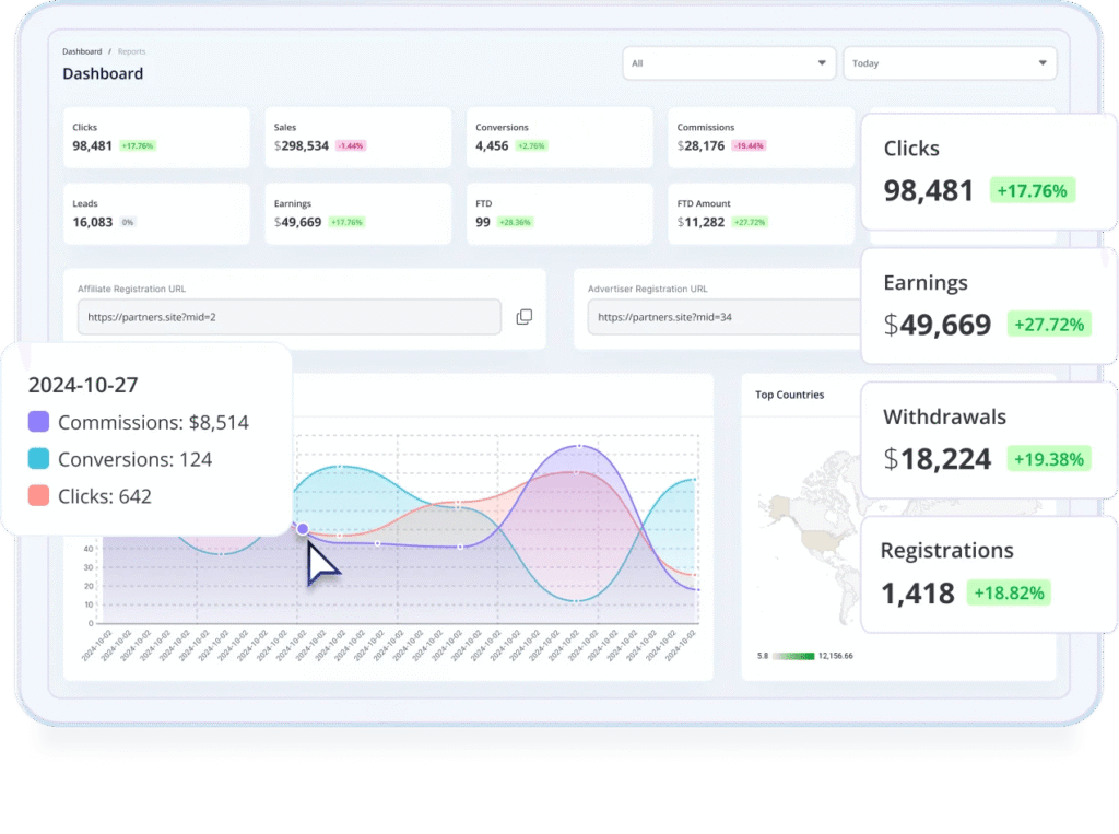 上位アフィリエイトには、パフォーマンスボーナス、限定オファー、そしてより高いレートの特典が提供されます。当社のチームは、お客様のビジネス拡大を支援する戦略的サポートを提供します。