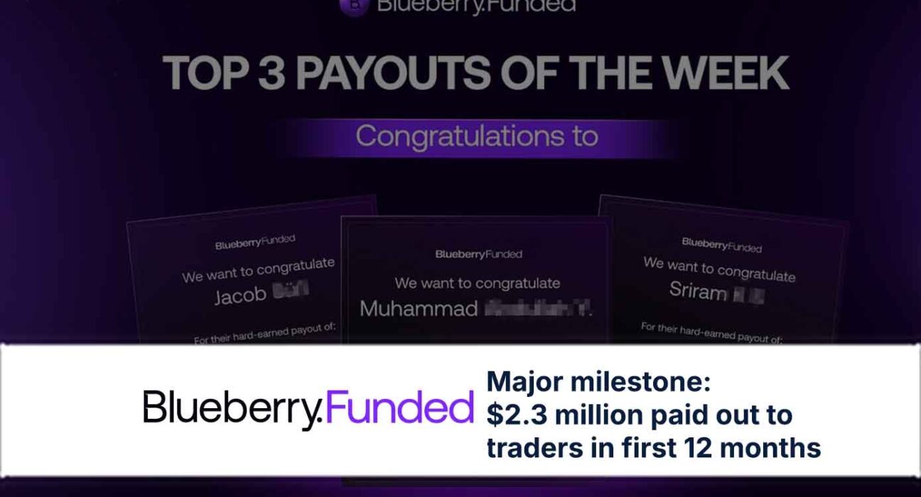 Blueberry Funded surpasses $2.3M in payouts during its first year, cementing its place as a serious prop trading contender.
